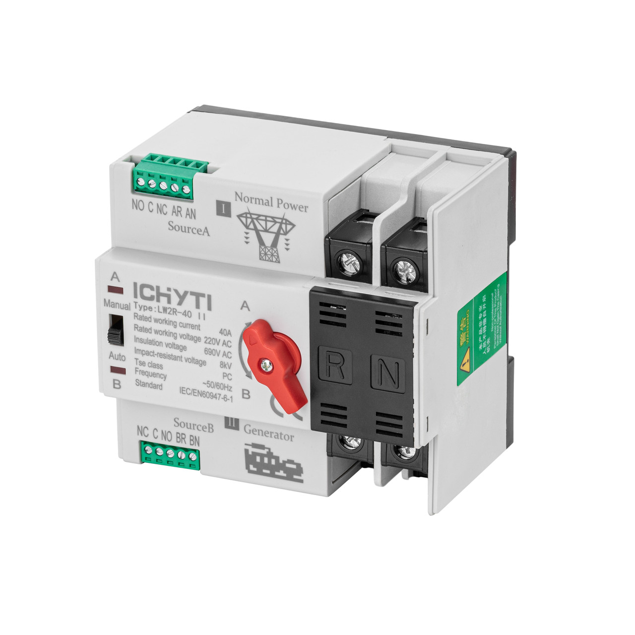 Автомат введення резерву CHYT 2P 40A – це високоякісний пристрій, призначений для автоматичного або ручного перемикання між основним і резервним джерелом електроживлення. АВР забезпечує стабільну подачу енергії, запобігаючи перебоям у роботі електромережі.